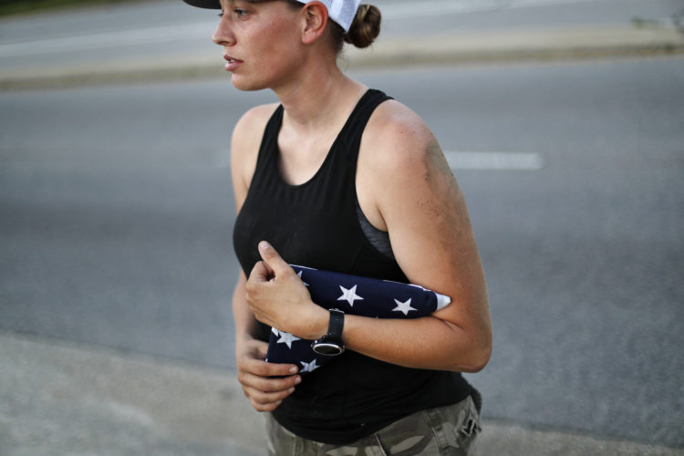 U.S. Army Sgt. Rose Stromberg holds the American flag she was able to retrieve from her storage unit which was flooded in the aftermath of Hurricane Florence in Spring Lake, N.C., Wednesday, Sept. 19, 2018. The flag, which is adorned with all the names of those killed in the 9/11 terrorist attacks, flew with her […]