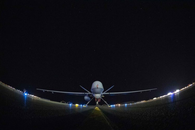 An Air Force MQ-9 Reaper sits on the runway at Creech Air Force Base, Nev., Oct. 16, 2020.