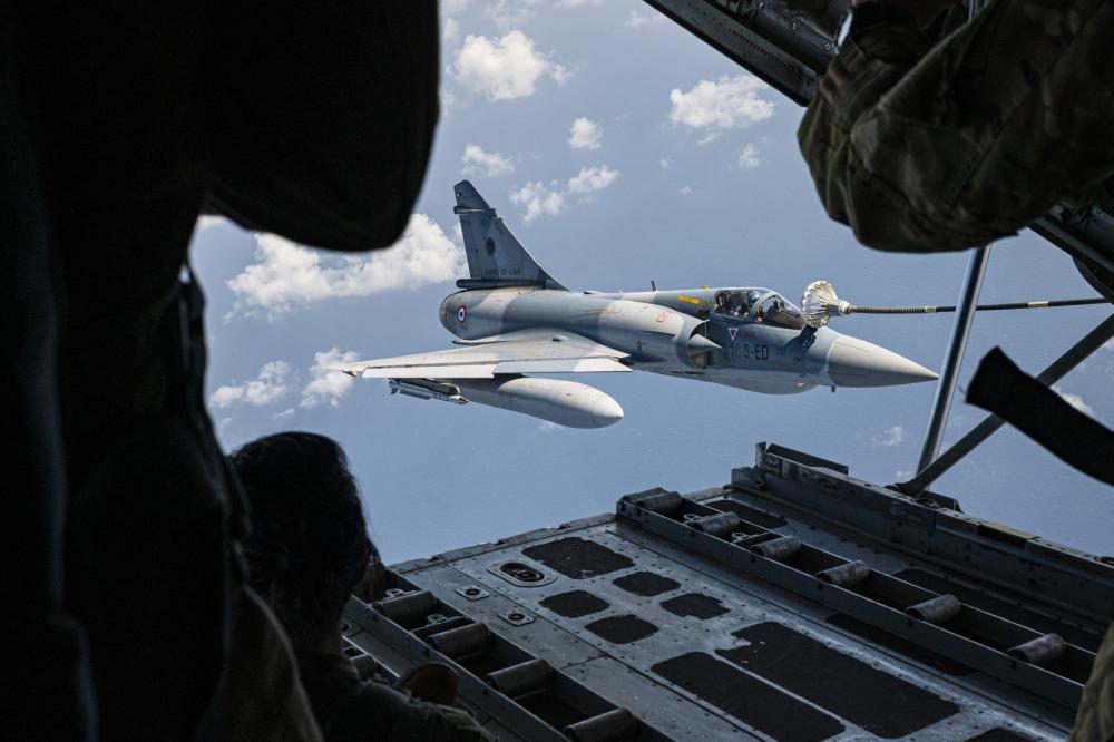 A French Mirage 2000 receives fuel from a U.S. Marine Corps KC-130J Super Hercules assigned to the Marine Aerial Refueler Transport Squadron 252 (VMGR 252) over Djibouti Dec. 14, 2022. The refueling unit is deployed from Marine Corps Air Station Cherry Point, North Carolina, and supports the Combined Joint Task Force – Horn of Africa by providing aerial refueling, airdrop and rescue capabilities to the area of operations.