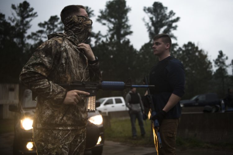 Volunteers put on safety equipment during a Special Operations Forces Exercise at Fort McClellan, Alabama, Nov. 7, 2019. SOFEX integrated different Air Force Special Operations Command aircraft with special operations personnel to train for real-life deployment scenarios.