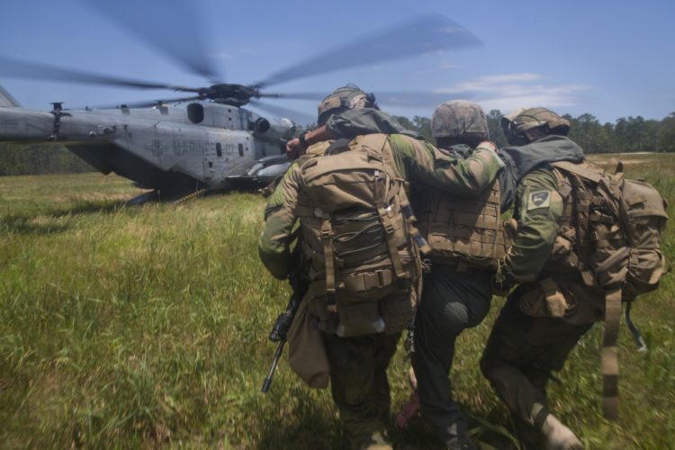 French Marines with 3rd Marine Artillery Regiment evacuate a simulated downed pilot during Burmese Chase at Camp Lejeune, N.C., on May 22, 2019. Burmese Chase is an annual U.S.-led multi-lateral exercise that includes training on fast-roping, naval gunfire and parachute employment with participating NATO allies. The exercise helps strengthen allied nations’ security as well as […]