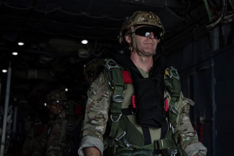 U.S. Air Force Col. Spencer Cocanour, former acting commander of the 24th Special Operations Wing, moves to the edge of an MC-130H Combat Talon II ramp as he prepares to execute his final military free fall jump at Hurlburt Field, Florida, Sept. 20, 2019. Cocanour is retiring after 24 years of service. The 24th SOW is U.S. Special Operations Command’s tactical air-to-ground integration force and the Air Force’s only special operations ground force, leading global access, precision strike, personnel recovery and battlefield surgery operations.