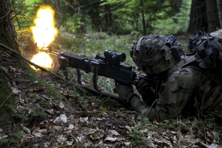U.S. Soldier assigned to the 6th Cavalry Regiment provide support by fire during exercise Allied Spirit at Drawsko Pomorskie Training Area in Poland, June 10, 2020. Exercise Allied Spirit is a Defender-Europe 20 linked exercise involving approximately 6,000 U.S. and Polish soldiers. The modified exercise will test a division-sized unit’s ability to conduct a deliberate water crossing, integrate with alliance capabilities and establish a common intelligence operational picture. The exercise, modified in response to COVID-19, operates in accordance with the guidance directed by DoD and host nations. All U.S. Soldiers and civilians involved in the exercise completed a 14-day quarantine and were tested for COVID-19 upon arrival with additional health screenings if necessary.