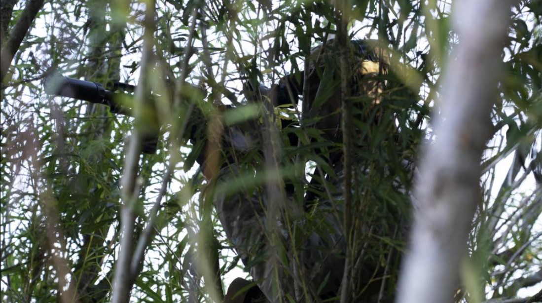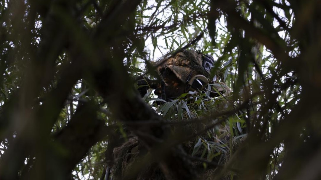 A U.S. Air Force Tactical Air Control Party specialist assigned to the 2d Air Support Operations Squadron out of Vilseck, Germany, awaits commands while conducting reconnaissance on a terrestrial target during exercise Cobra Warrior 22 in England, Sept. 21, 2022. Cobra Warrior 22 develops tactical interoperability skills of participating Airmen, Allies and Partners through integrated cross-domain effects against a peer adversary. (U.S. Air Force photo by Staff Sgt. Gaspar Cortez)
