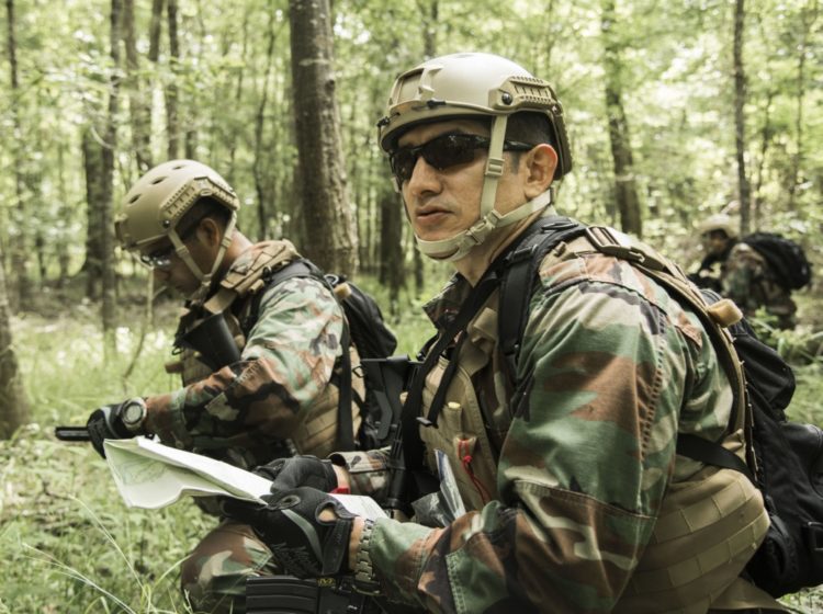 NAVSCIATTS’ Special Operations Forces Tactical Patrol Leader course is a seven-week course designed for company-level junior officers and senior enlisted personnel that provides international special operations forces, selected conventional forces and law enforcement agency students with tailored training in the tactical employment of platoon-sized units in various environments and operational scenarios. Instruction consists of human rights, advanced land navigation, SOF patrolling, physical training, route planning, combat reaction drills, mission planning, ambushes, raids, and special reconnaissance tactics. The course culminates with a Final Training Exercise encompassing all material covered to ensure students have attained tactical proficiency in platoon-sized elements.