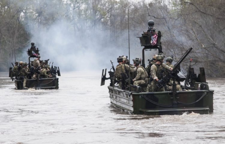 Members of Special Boat Team 22 participate in a Special Operations Craft Riverine demonstration at the Naval Small Craft Instruction and Technical Training School. NAVSCIATTS trains and educates foreign security forces and other international students on small craft strategy, operations, communications, weapons, maintenance and instructor development.