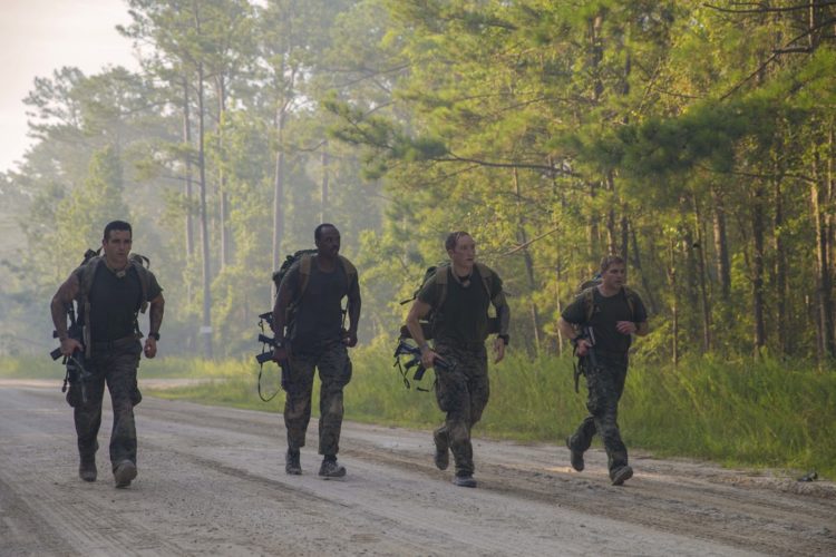 U.S. Navy hospital corpsmen assigned to 2nd Marine Division (2d MARDIV), race against each other during the 2d MARDIV Corpsman Challenge at Camp Lejeune, North Carolina, on June 28, 2019. This gave the sailors an opportunity to show their mastery of Tactical Combat Casualty Care by pushing themselves mentally and physically throughout the event to win.