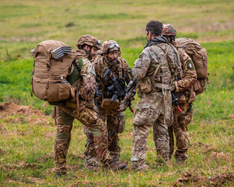 Italian Army paratroopers from the Folgore Airborne Brigade coordinate with the Special Forces Soldiers from the U.S. Army’s 10th Special Forces Group (Airborne) Sept. 17, 2019 after the Italian paratroopers parachuted onto a drop zone secured by special operations forces as part of exercise Saber Junction 19 in Hohenfels, Germany. Approximately 100 Special Operations Forces from Bulgaria and the U.S., along with Lithuanian National Defense Volunteer Forces integrated with 5,400 multinational conventional forces lead by the U.S. Army’s 173rd Airborne Brigade to execute land operations in a joint, combined environment.