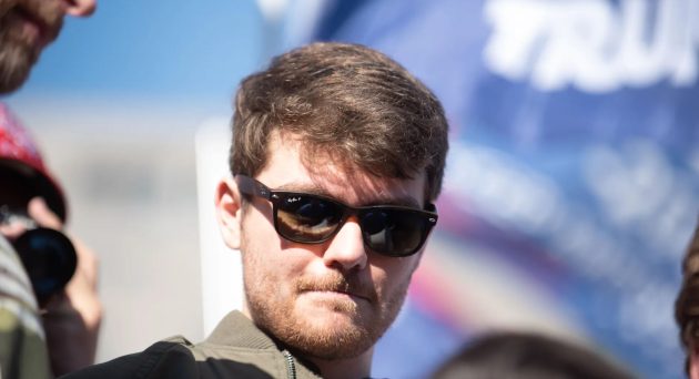 Nick Fuentes preparing to speak to a group of his followers in Washington, D.C. Image credit: Zach D. Roberts/NurPhoto via Getty