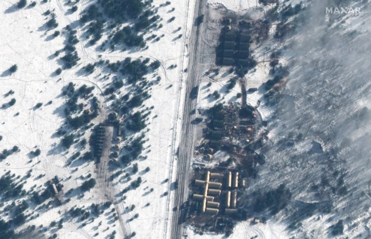 A field hospital found in the far lower right corner of the satellite image, taken near Gomel, Belarus last February 10 (Maxar vis Axios)