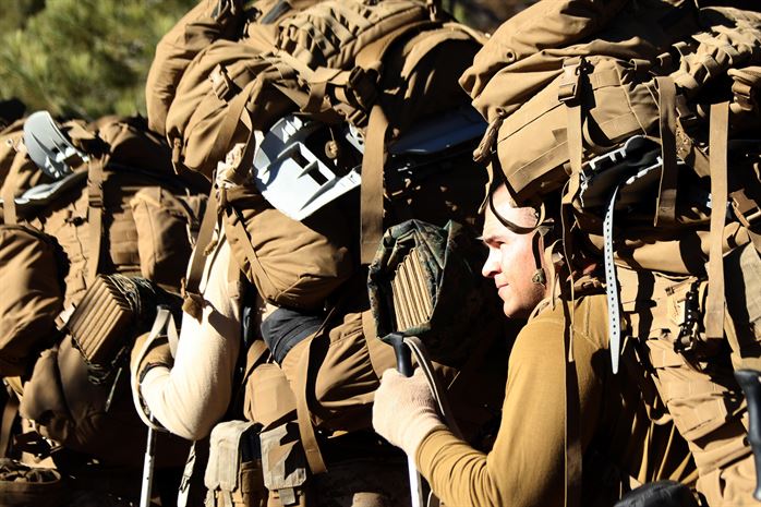 From there, you can add weapon systems, the lightest of which would be the M4, which with ammunition adds around 15 pounds. On average, Marines today carry around 20 pounds of batteries for different bits of tech (like the less-than-advanced AN/PRC-117 radio that burns through batteries like a kid’s remote control car on Christmas). Squad weapons, like the M249, weigh 22 pounds loaded, with another six pounds added for each additional belt of ammunition. Mortars or rockets can also add a great deal of weight to a pack — to the tune of around 4 pounds per round.