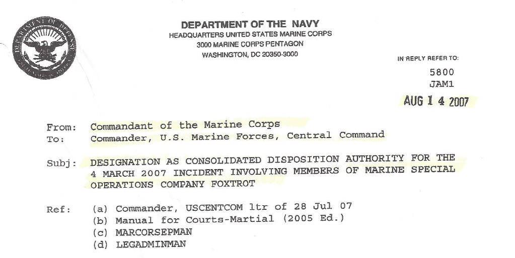 The basic story of the men from MARSOC’s Fox Company (MSOC F), the first Marine special operations unit to deploy to a combat zone in the War on Terror, has previously been touched on. The controversy, the accusations, the ruined reputations—they have all been covered to an extent. This article will provide insight on many recently declassified documents that have been suppressed for almost 10 years. MSOC Fox had no chance of acquittal due to numerous senior officers from multiple branches negatively influencing the case, as evidenced by the recently declassified documents made available to SOFREP.