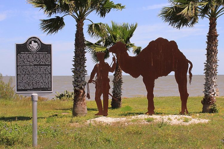 The U. S. Camel Corps State Historical Marker in Indianola, Texas. (Larry D. Moore, CC BY-SA 4.0, via Wikimedia Commons)