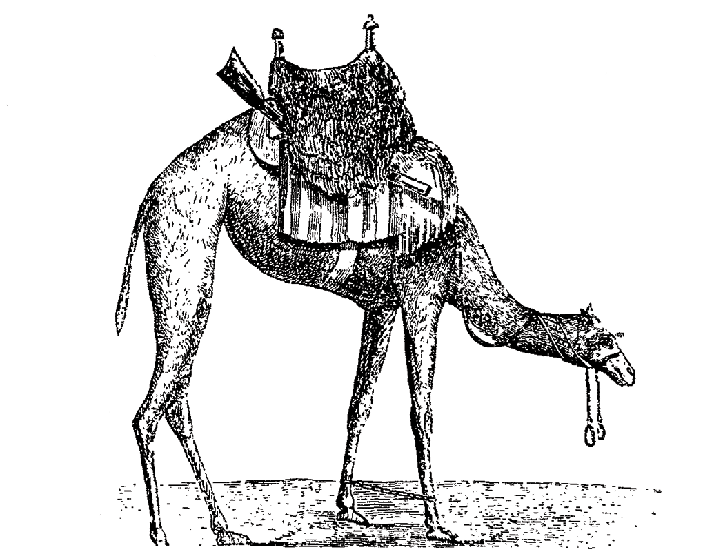 For strength in carrying burdens, for patient endurance of labor, and privation of food, water & rest, and in some respects speed also, the camel and dromedary (as the Arabian camel is called) are unrivaled among animals. The ordinary loads for camels are from seven to nine hundred pounds each, and with these they can travel from thirty to forty miles a day, for many days in succession. They will go without water, and with but little food, for six or eight days, or it is said even longer. Their feet are alike well suited for traversing grassy or sandy plains, or rough, rocky hills and paths, and they require no shoeing…