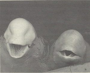Aydin, or Tichka, showing the scar on his upper right lip. (From A Farewell to Whales by Pierre Béland, photographer unknown via dolphinproject.com)