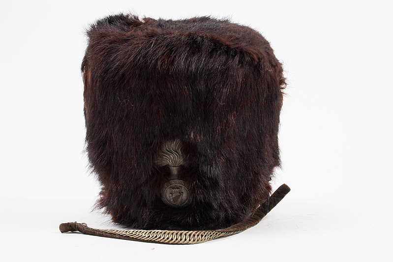 As mentioned earlier, British, Spanish, and French grenadiers wore bearskin caps to appear taller and more intimidating. Napoleon’s Imperial Guards, who had been fighting alongside him for a long time, wore them. These grenade throwers also received better pay, more rations, equipment, and quarters. Safe to say, they were The Little Corporal’s most elite fighters. And so, he sent out his most trusted, best French Imperial Guards against the British First Foot Guards at Waterloo in hopes to be once again the master of Europe. The British Guards successfully beat the Frenchmen, even though they were bombarded with artillery. The retreat of the French Guard demoralized the rest of the French Army as they cried up and down the battleline, “‘La Garde Recule!’[The Guard Retreats!]. More than just retreating, they were chased by the British Guards with charged bayonets. The British troops collecting the discarded bearskin hats of the French along the way.