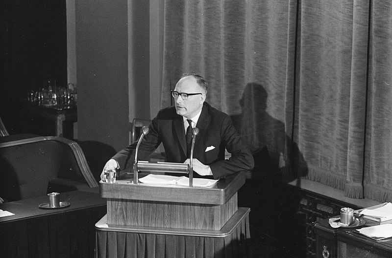 Johan van Hulst speaking in the Senate (Harry Pot / Anefo, CC0, via Wikimedia Commons)