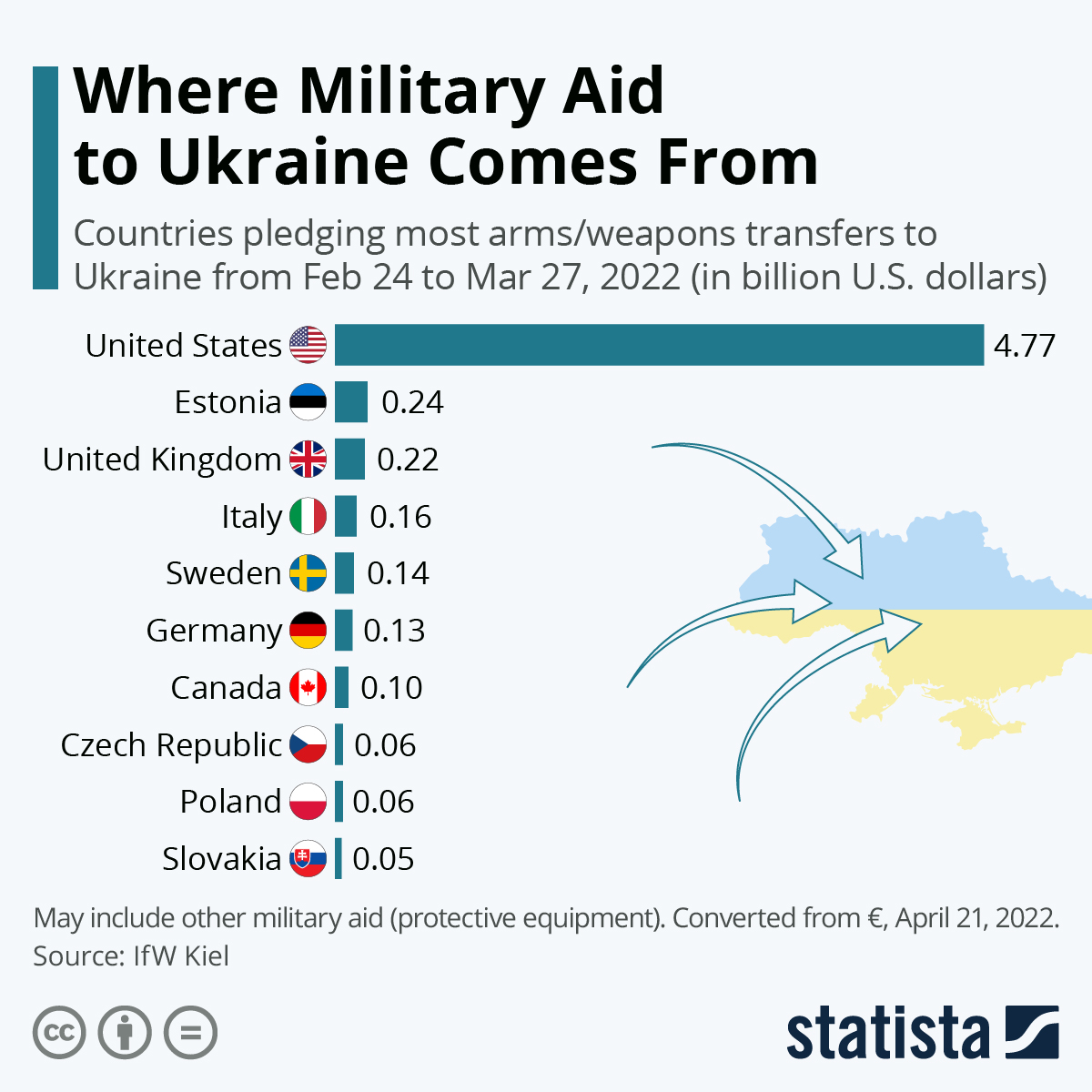 “If we take that number and turn it into actual weapons, it doesn’t buy much at all. At a price tag of nearly $6 million a copy, $1.1 billion would buy you about 183 German Leopard 2A tanks. It would buy less than 9 Eurofighter aircraft. It would buy more in terms of artillery and rockets, but not enough to take on a Russian army with some 12,000 tanks (fewer now) and nearly 1,200 fighter jets.”