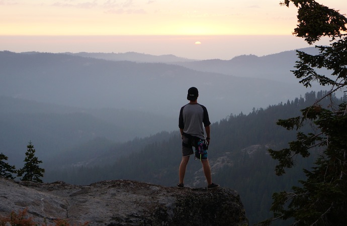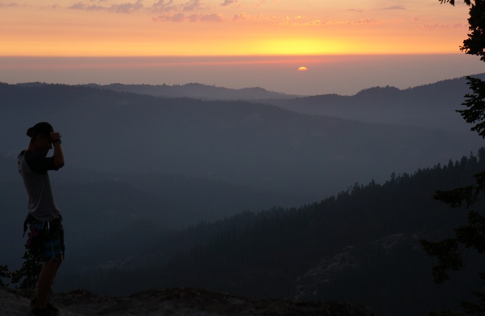 Now, we were both together, it was obviously time to find my cliff. During our drive in we noticed granite rocks just off the trail. After a few short minutes of scrambling about we found them: A perfect set of terraced stone walls up against the end of the world. It was late so we decided to eat dinner at the edge of infinity and forgo the cliff plunge until the next day.