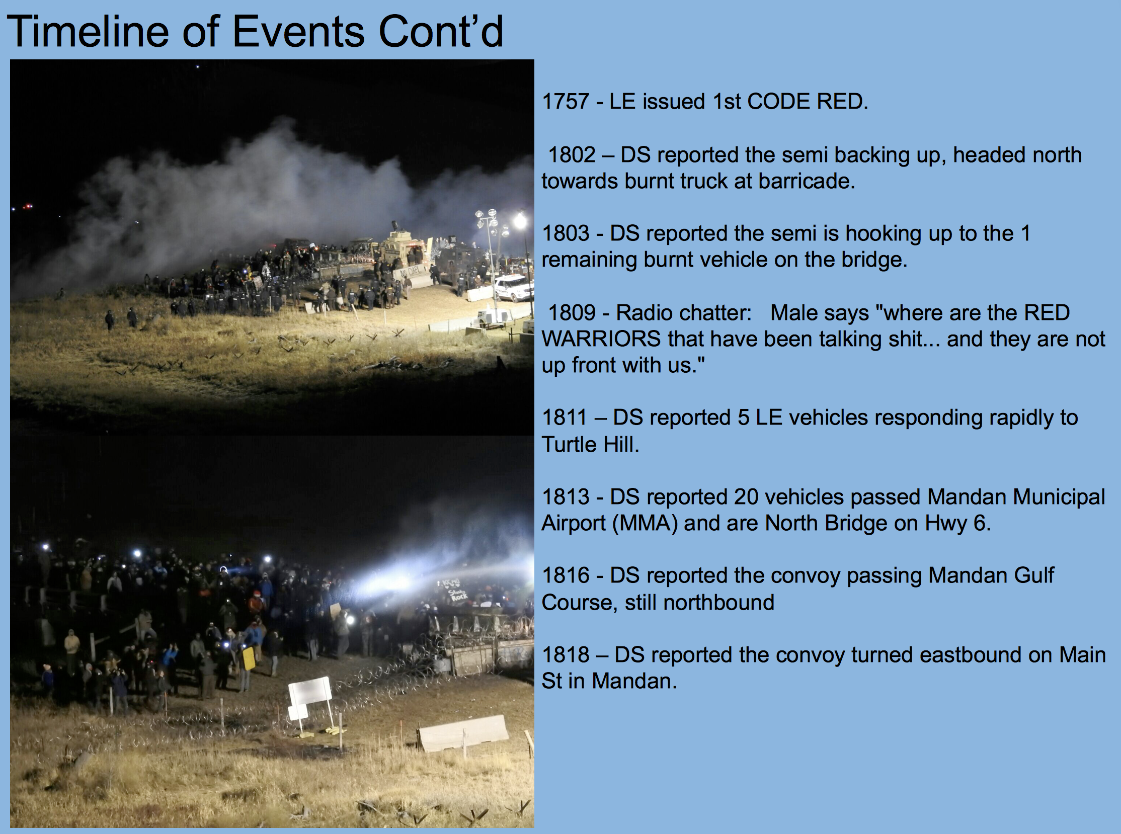 A timeline of events at the North Bridge made by TigerSwan employees as part of a internal intelligence brief.