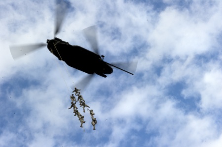 While commonly seen in public demonstrations, there was a time when fast-roping was considered a classified infiltration technique. First developed by Delta Force with some help from the British Special Air Service, fast-roping involves attaching a thick, braided rope to a mount on the side of a helicopter.