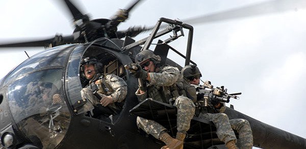 When shooting from a helicopter, however, you are the moving target and what you are shooting at may or may not be stationary. As you fly by, the sniper has to utilize a reverse lead, firing behind his target! Does that make sense? No? Doesn’t to me, either. Yeah, we all want to be like Berenger and Zane, but no one is seriously coming up with ballistic solutions while looking through a 10x scope and flying around on the side of the Little Bird. For that reason, the sniper in this instance is better off removing his scope and using a red-dot sight.