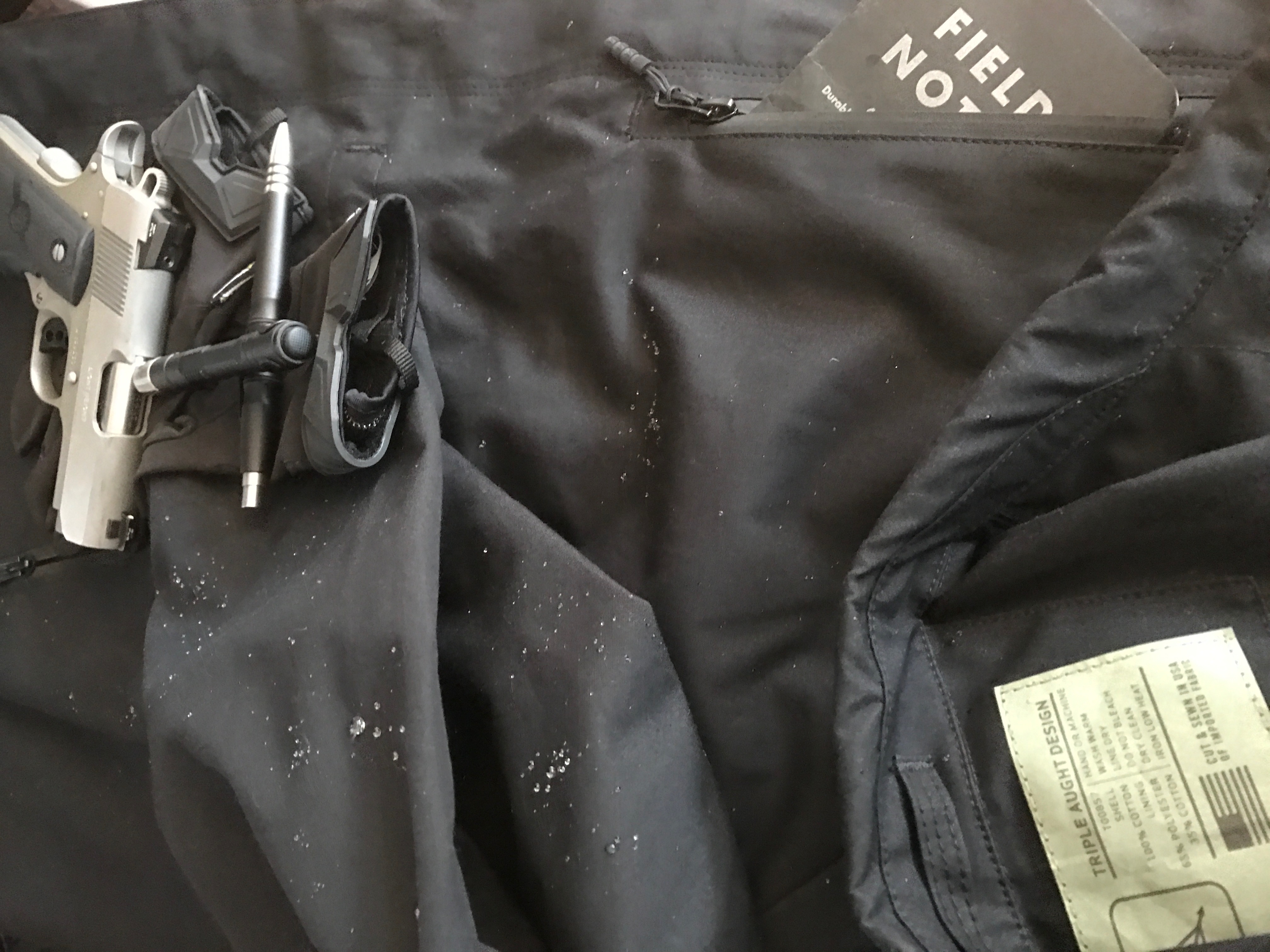 For those that are looking for a jacket that can be worn over a “modern” sport coat, this jacket is just the right length, and the waist can be cinched for a more tailored look. However, be advised if you are wearing a 1980’s version of the sport coat it will hang lower than this jacket, and you’ll look like a tool. Additionally, I recommend that if you weigh 180 lbs or more, order a size larger so you can wear layers and add your load out kits. As with your climbing shells you will need to add DWR after a few cleanings, but be forewarned this jacket is made from 100% Cotton and could possibly shrink, TAD suggests hand washing.
