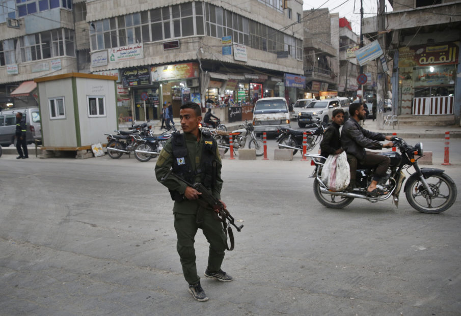 Featured Image: In this photo taken on Wednesday, March 28, 2018, a member of the Kurdish internal security forces patrols a commercial street in Manbij, north Syria. Manbij, a mixed Arab and Kurdish town of nearly 400,000, was liberated from Islamic State militants in 2016 by the YPG fighters with backing from U.S-led coalition airstrikes. With Turkey’s threats, the town has become the axle for U.S. policy in Syria, threatening its prestige and military deployment in eastern Syria. (AP Photo/Hussein Malla)