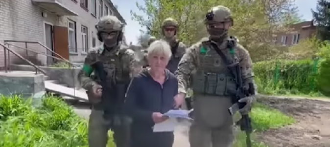 She is also accused of forcing townsfolk to wear white armbands that symbolize support for Russian fighters who don white and orange armbands as opposed to yellow, green, and blue colors worn by Ukrainian troops.