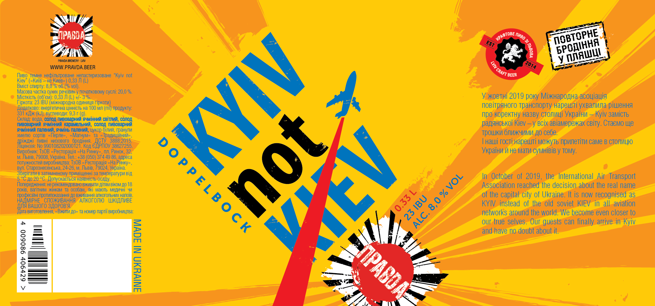 Label for Kyiv Doppelbock, 8% alcohol by volume. Image courtesy of Prava brewing