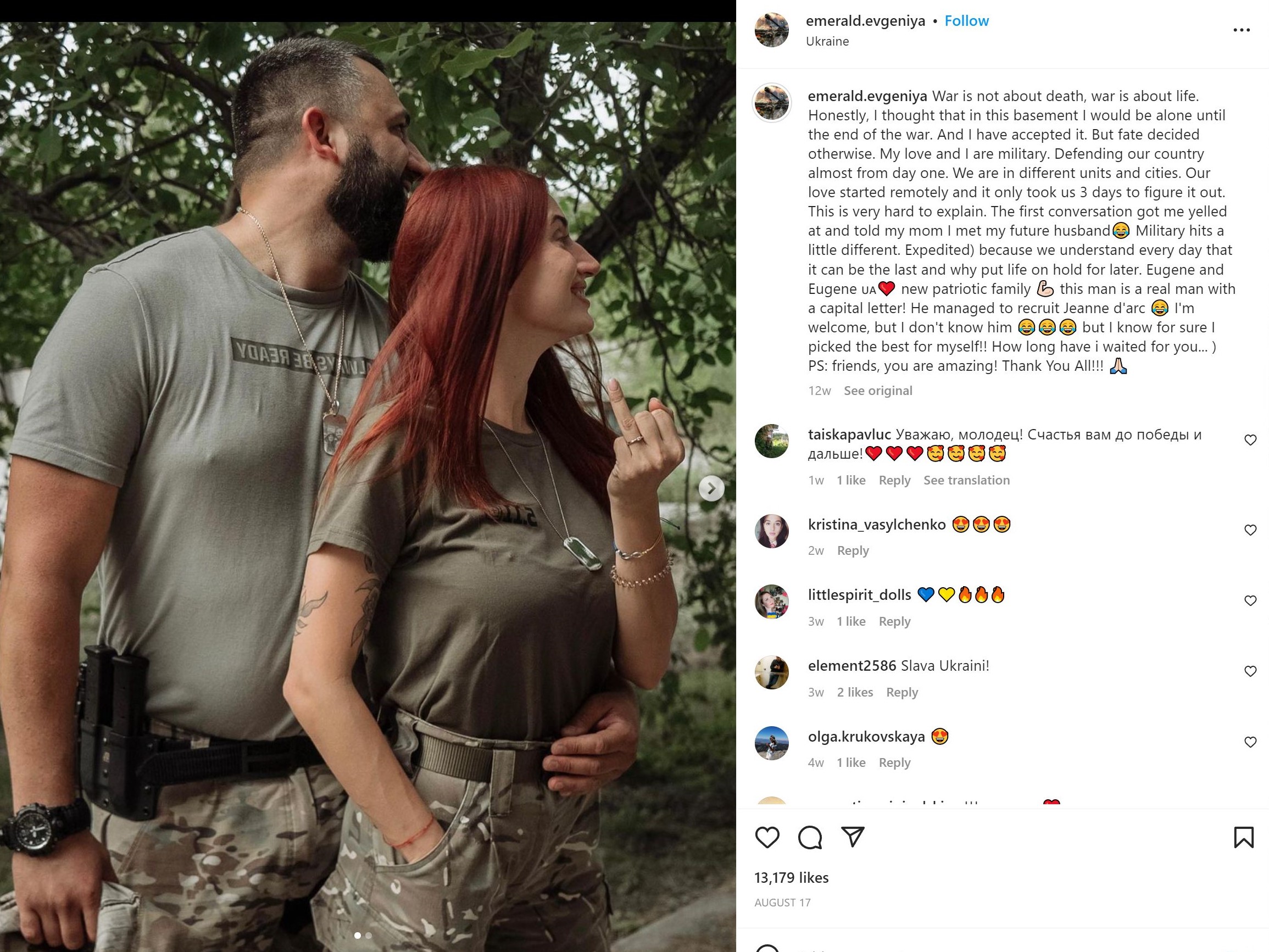 Emerald quickly changed the subject, stating that she really believed war was about life. How is what? Well, she found her husband because of war. On Instagram, of all places. Starlink has helped to keep Ukraine in touch with the rest of the world. In a way, Elon Musk was kind of their matchmaker. Her new love interest, Yevgeny, was serving in the artillery in a different part of Ukraine, and he took leave so he and Emerald could meet in person. They spent three days together, and she knew he was the one.