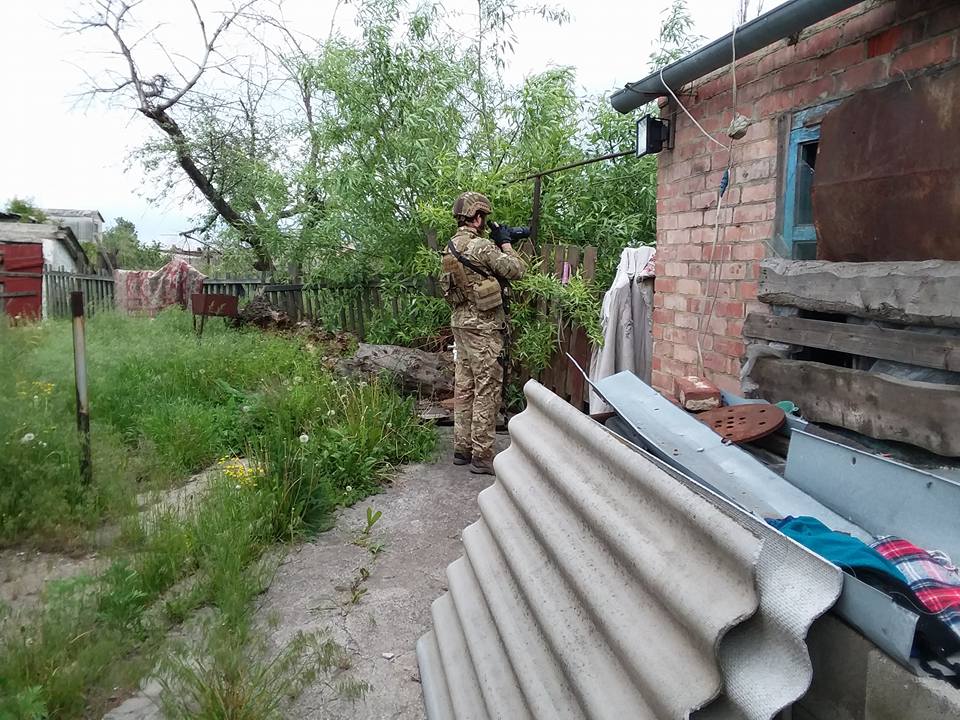 The men of one of Ukraine’s elite Army Recon platoons have developed a system based on the almost exclusive use of hand signals and slow meticulous movement. These techniques aid in avoiding trip wires and mines for starters but also fit to a very distinct environment and situation. Their occupation requires them to move forward of friendly lines and scout terrain that is often sparsely populated suburban areas that are occupied and observed by pro-Russian forces. So this form of CQB aids them in avoiding detection from separatist fighters but more often civilians living in adjoining houses who may expose the team’s position.