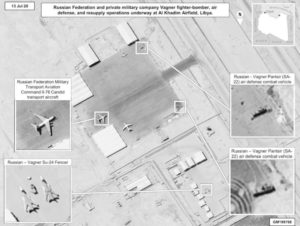 AFRICOM released several satellite images, which clearly show that Russia supplied Wagner forces operating in Libya with fighter aircraft, military armored vehicles, air defense systems, and supplies. The U.S. tracked 14 SU-24 attack aircraft and MiG-29 fighters that flew from Russia to Syria and then to Libya. Their Russian markings were painted over to conceal their identity.