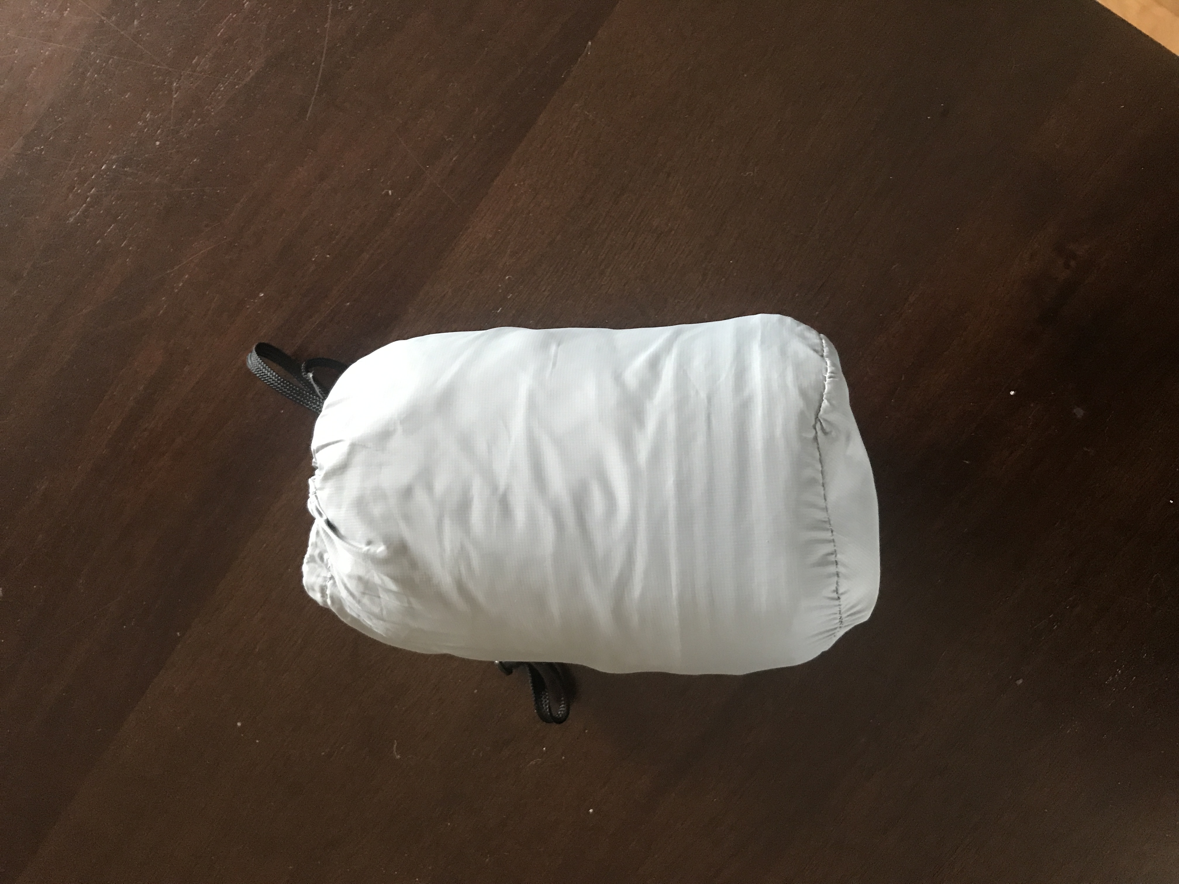 Based on testing, this jacket has minimal water repellency and is merely good for about an hour with anything lower than 3 psi of water pressure. So, if you are in a light rain without stuffing the jacket with insulating layers, you will be able to stay semi-dry while looking for better shelter. While this jacket is very compact and can be stored in the provided sack, for dealing with rain or snow, my preference would be for either Gore-Tex Paclite or Gore-Tex Active with any compression sack to be of similar size and will give you additional protection for a few more dollars.