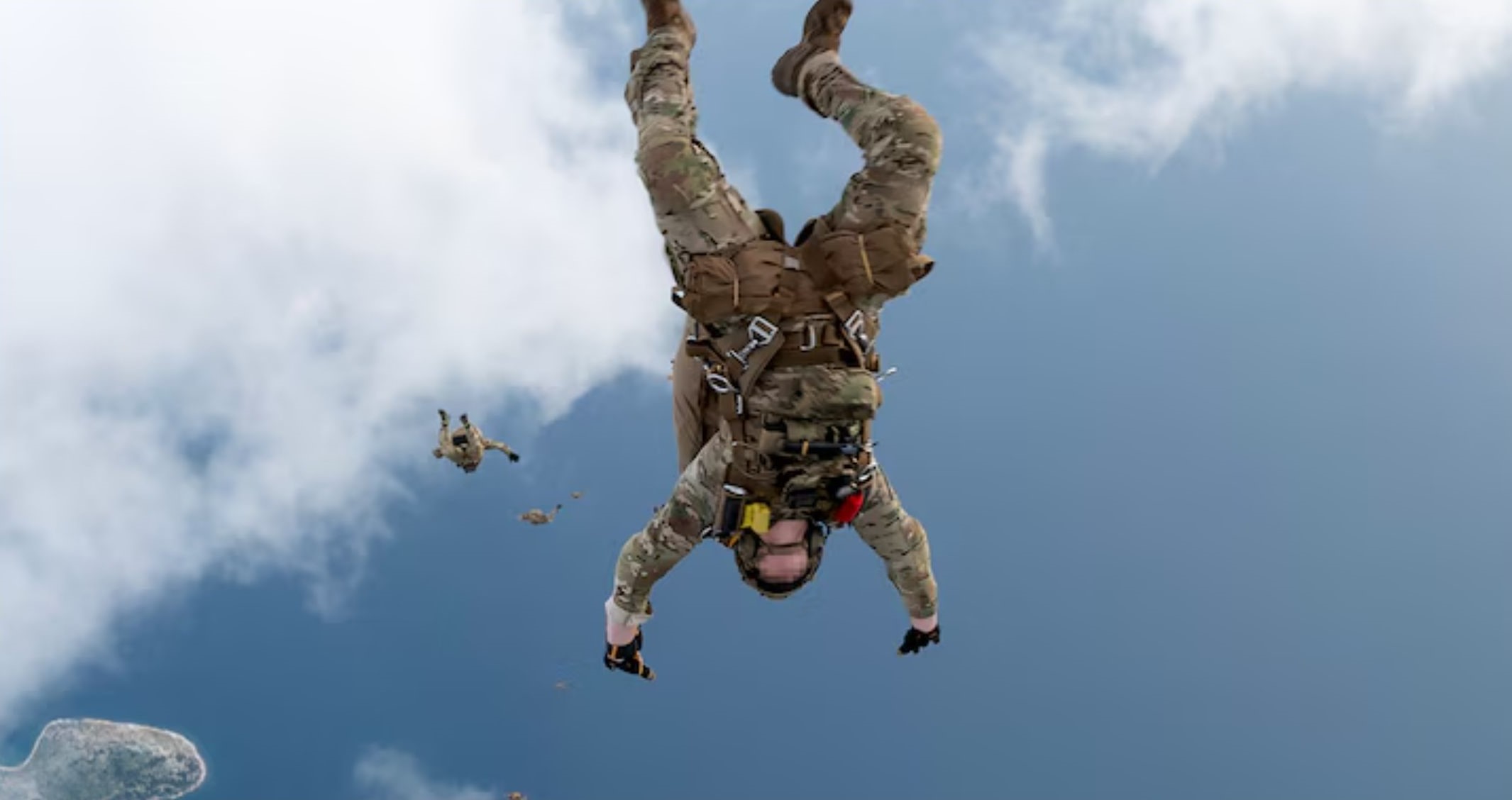 US Army Special Forces and Greek operators freefall together over the Greek islands during Trojan Footprint 24.