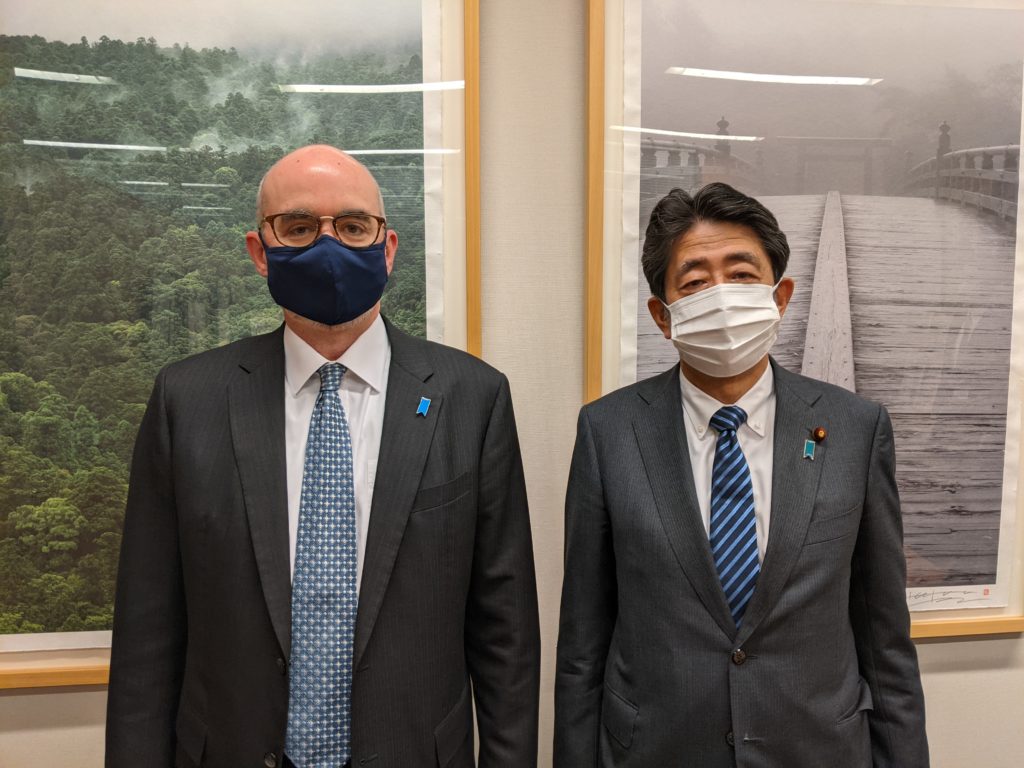 Former Prime Minister @AbeShinzo and I recently met to discuss the essential role of the #USJapanAlliance in maintaining peace and prosperity in the free and open Indo-Pacific region. (Source: Office of U.S. Ambassador to Japan, Public domain, via Wikimedia Commons)