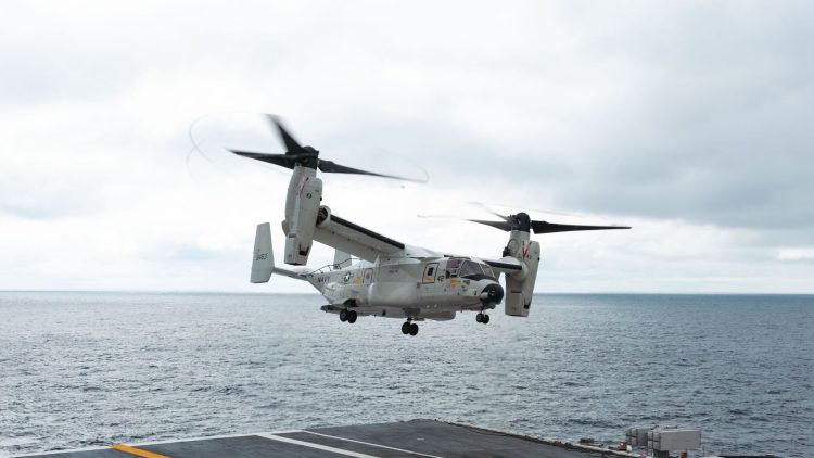 “With 50 [percent] more internal fuel than the Marine Corps’ Osprey variant, CMV-22B can transport up to 6,000 pounds of cargo and personnel over a 1,150 nautical mile range,” a Navy report from 2022 on the CMV-228 Osprey said. The report added that “the Navy redesigned the forward sponson fuel tanks and added two wing fuel tanks to add capacity and extend the flight range.”