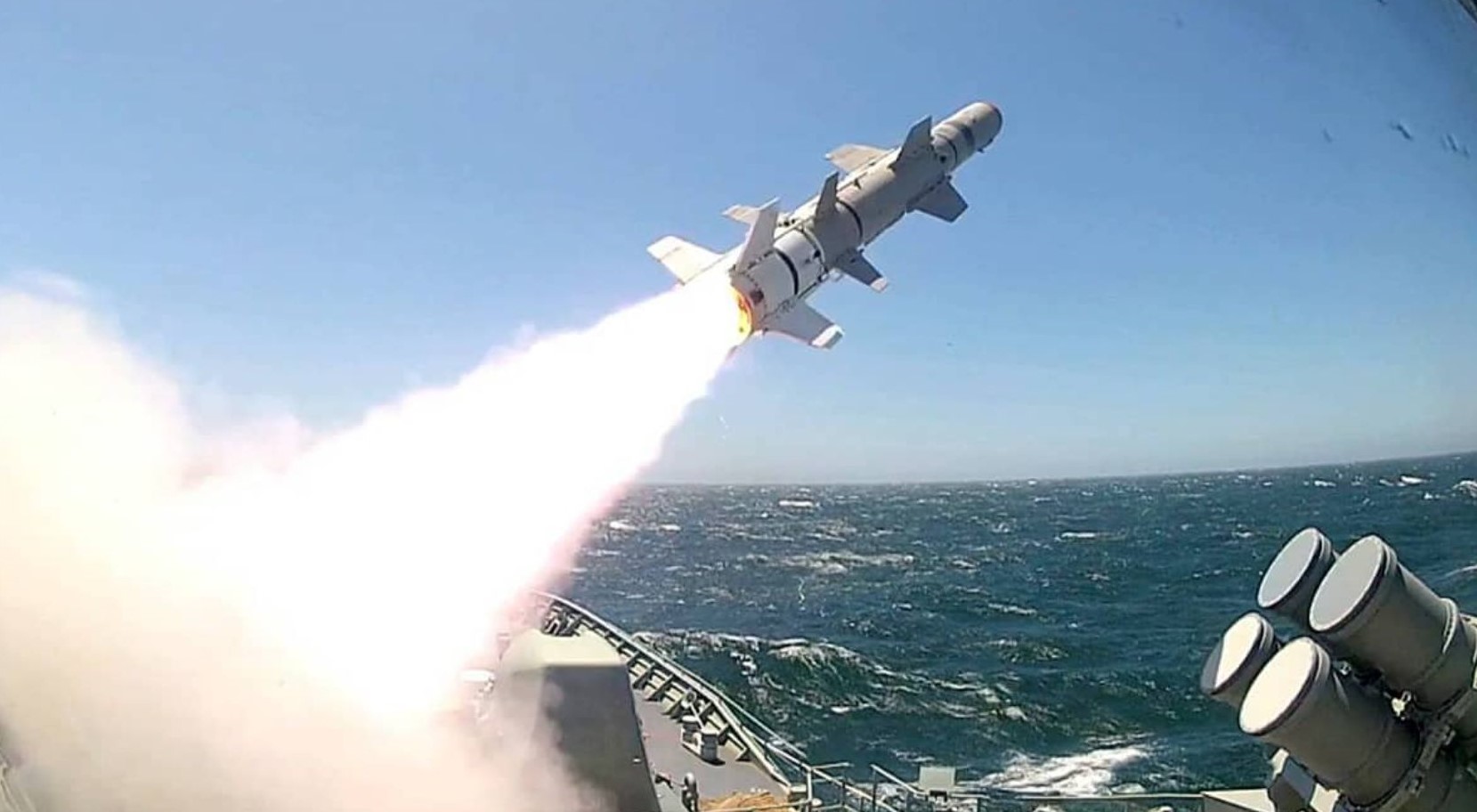 A Harpoon anti-ship missile makes its way towards its target. Photo credit: navy.gov.au