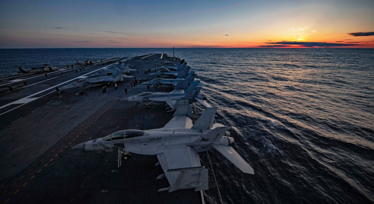 US Navy’s fighter aircraft fleet aboard the USS Gerald R. Ford (CVN 78) flight deck on May 5, 2023. (Image source: DVIDS)