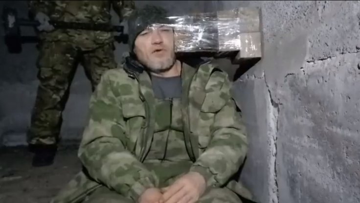 Wagner Deserter Dmitry Yakushchenko seen strapped with cling tape to a wall before his execution. Photo from IBTimes
