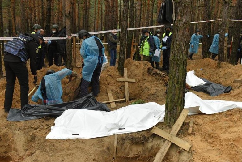 After the liberation of Kharkiv, mass graves and torture chambers were found. In the town of Izium alone, 447 bodies of men, women, and children were removed from one burial site.