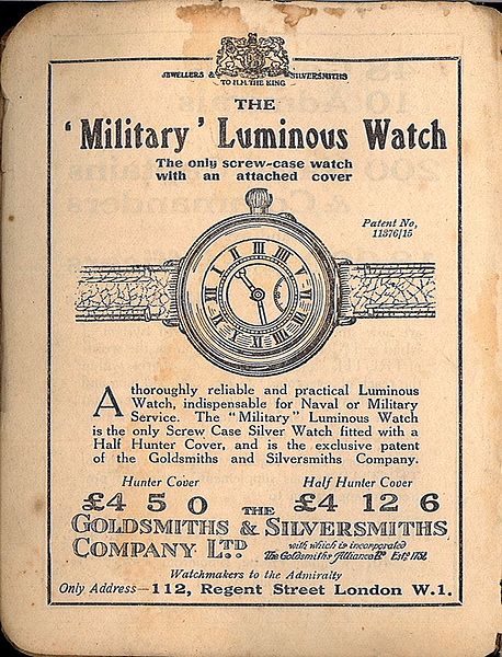 Frontispiece, watch advertisement (Signalling, 1918). (Andy Dingley (scanner), Public domain, via Wikimedia Commons)