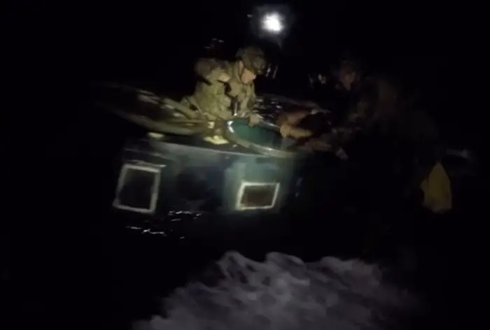 According to a Coast Guard release, the Valiant was redirected to intercept the 40-foot submarine after it was spotted by a nearby aircraft. The order, which came from the Joint Interagency Task Force South (JIATF-S), came just before sunset on an as-yet unspecified date in September. The Valiant deployed two small boats, each with its own team comprised of crew from the cutter itself as well as personnel from the Coast Guard’s Tactical Law Enforcement Team. Shortly after they began the operation, the Coast Guard vessel was joined by “Colombian Naval assets,” though no further elaboration was provided regarding any support the Colombian Navy may have provided.