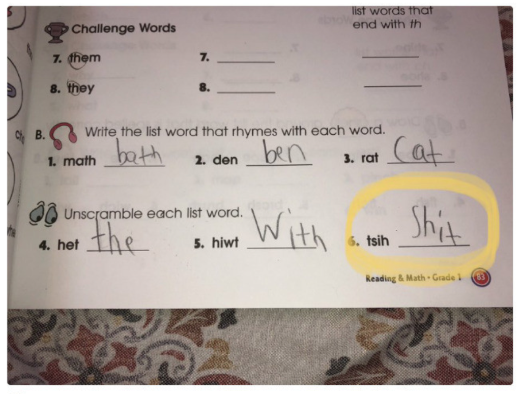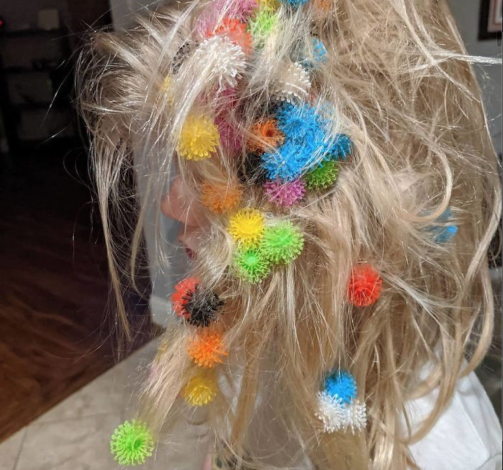 Mom makes sure the birthdays continue to happen even in quarantine. Mom will have to teach her little Billy how to effectively blow out a candle, as Little Billy unleashes a flurry of slurry consisting of 1:3 household bleach and water to decontaminate the cake from potential CV-19 contamination. Little Billy’s carburetor is running a bit rich with regard to its fuel/air mixture…Little Billy’s home schooling is coming along just swimmingly; I actually dare mom to count this one wrong!Little Billy busied himself for good cause reinforcing this otherwise crumbling bathroom tile with some industrial adhesive strips that mom will probably want to restock on so that little Billy can finish the rest of the structure.Loving little Billy thoughtfully made little sister a hat from their Hasbro Pink Slime Pack.Resourceful little Billy discovered the greatest scouring potential for his potty tray lay in mom’s tooth brush.Little Billy demonstrated to other little sister how the corona uses its outer spike protein shell to attach to Angiotensin Converting Enzyme two (ACE2) receptors in the human respiratory system.
