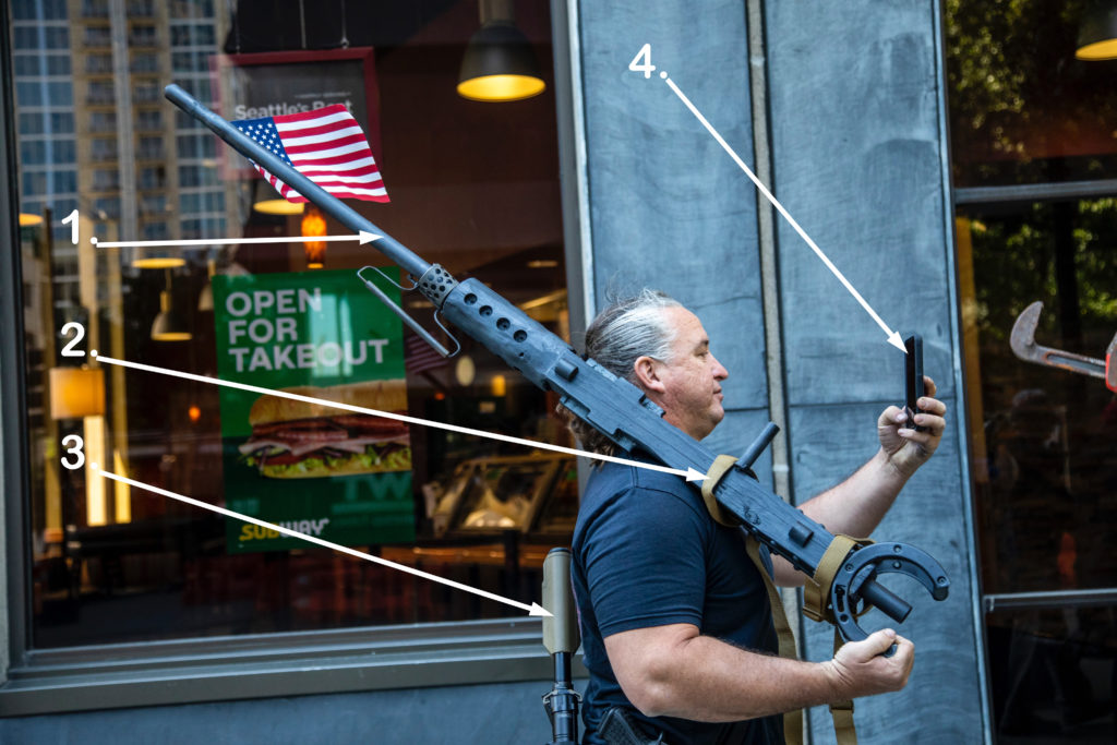 1. Molded plastic replica of a 50-caliber machine gun with anti-aircraft version trigger
