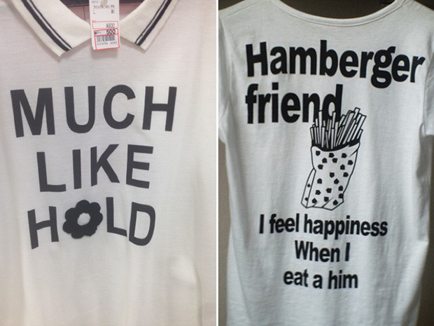 This… shirt… put me about 12 joules away from an aneurism trying to hyper analyze it. Here’s where I went with it, and I had to really deep-dive my chineez language skill for support: “Much Like Hold,” I was on it like a bonnet deducing that it roughly translates to: “I want a hug.”