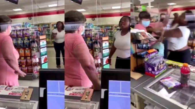This week’s Karen is actually two Karen — a Karen and a “Sha-Karen.” It seems, though I’m not positive, that Honkey (H-word) Karen call Shakaren the “N-word” (noodlehead??). It looks like the tiff was over, yet again, the wearing of a mask in public. A spit ensued that ended in a spat. Karen called Shakaren the N-word — nooooot at all acceptable! That prompted Shakaren to approach and beat H-word Karen’s ass; she beat her in the head at least five solid times.