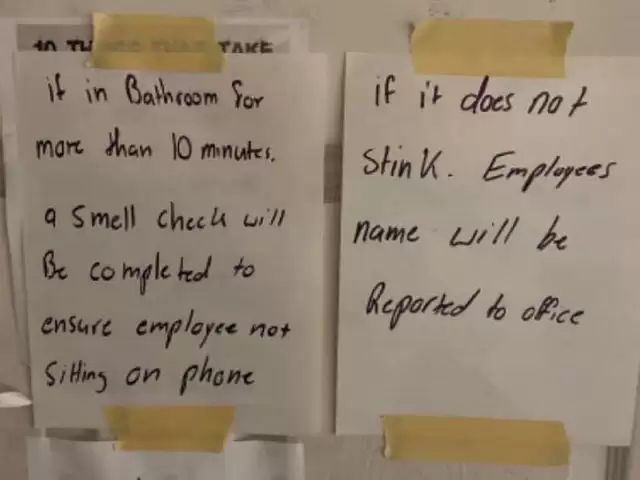 This business in Baltimore seems to feel threatened with going under by the amount and length of breaks that its employees are taking in the bathroom. It seems that the workers will go sit in the bathroom for long periods of time not actually engaging in bathroom-appropriate functions — but rather chatting on their smartphones.