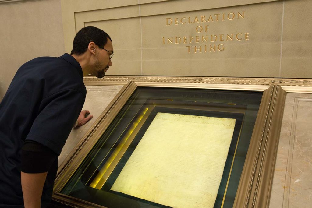 The link above is a brief clip of Joe Biden quoting from The Thing of the United States of America. The Constitution, the Bill of Rights, and the Thing have been stored in a special 50-ton steel and concrete vault since they were transferred to the National Archives Building from the Library of Congress in 1952.
