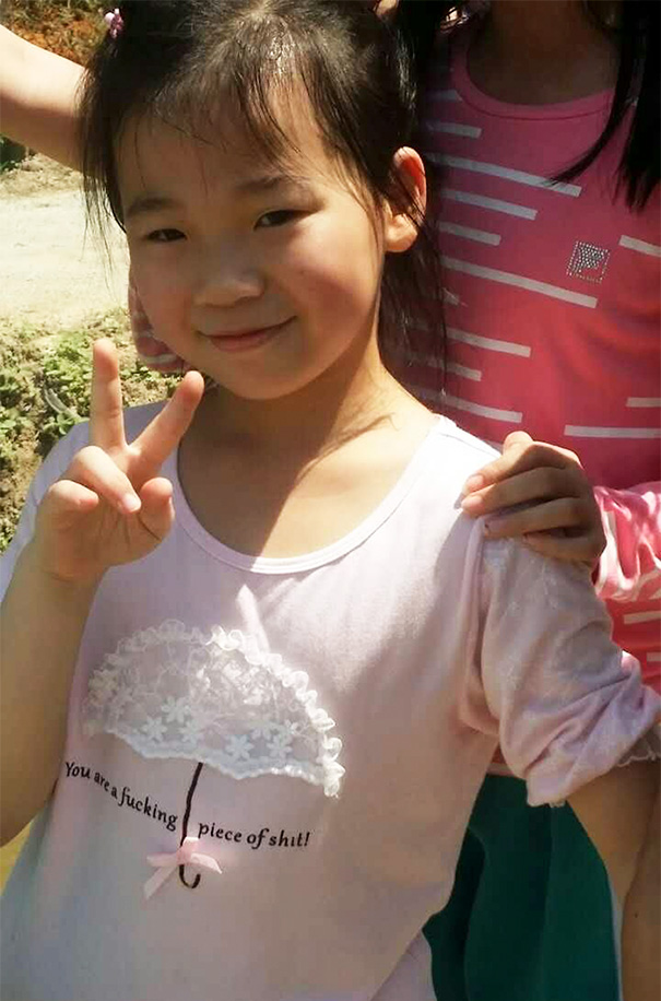 We see this all over the world, including in our own country, because it has been all the trendy range since forever. Foreign words and phrases on T-shirts and mostly any garment, I suppose. By far Japan is the leader in “In ain’t cool unless it has some English splattered on it.”